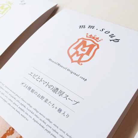 お店の人気スープ3種類(トマト・きのこ・コーン)をお家でも楽しめるカタチにしたい…。そんなオーナの願いがたっぷり詰まったスープの完成。 マーゼルブランドをしっかり伝え、カラーリングで3種類を表現。イベント出店用でPRツールも制作。健康スープを楽しく伝えられることができました。